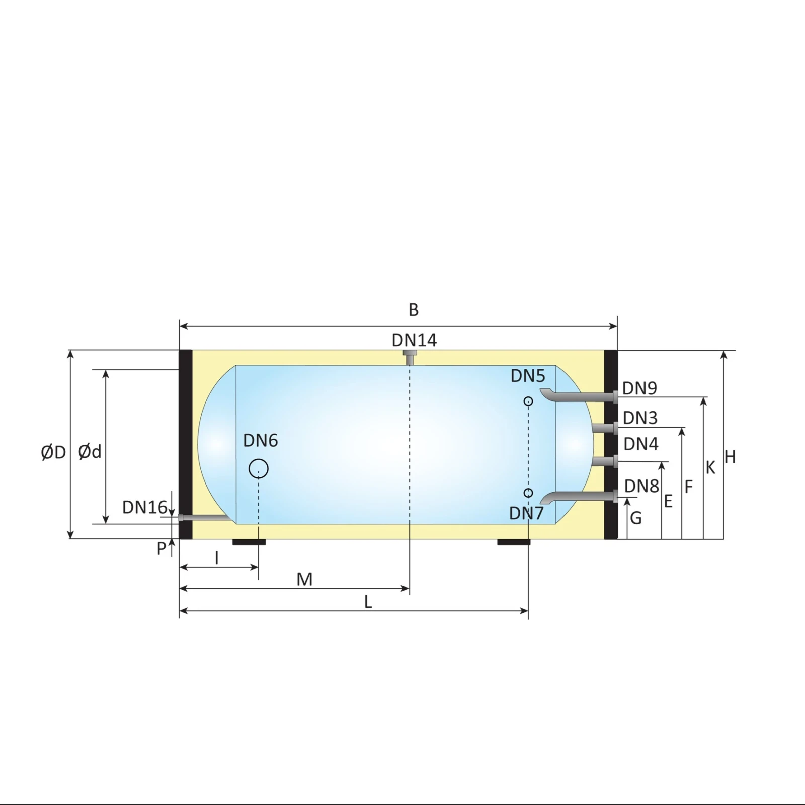 Der PWT-200H ist ein horizontaler Pufferspeicher mit 200 Litern Fassungsvermögen, der für Installationen konzipiert wurde, bei denen eine vertikale Aufstellung nicht möglich oder erwünscht ist. Dank seines Innenbehälters aus Duplex-Edelstahl 2205 und der hochwertigen Isolierung bietet dieser Speicher eine langlebige, robuste und korrosionsbeständige Lösung für Heizsysteme.
