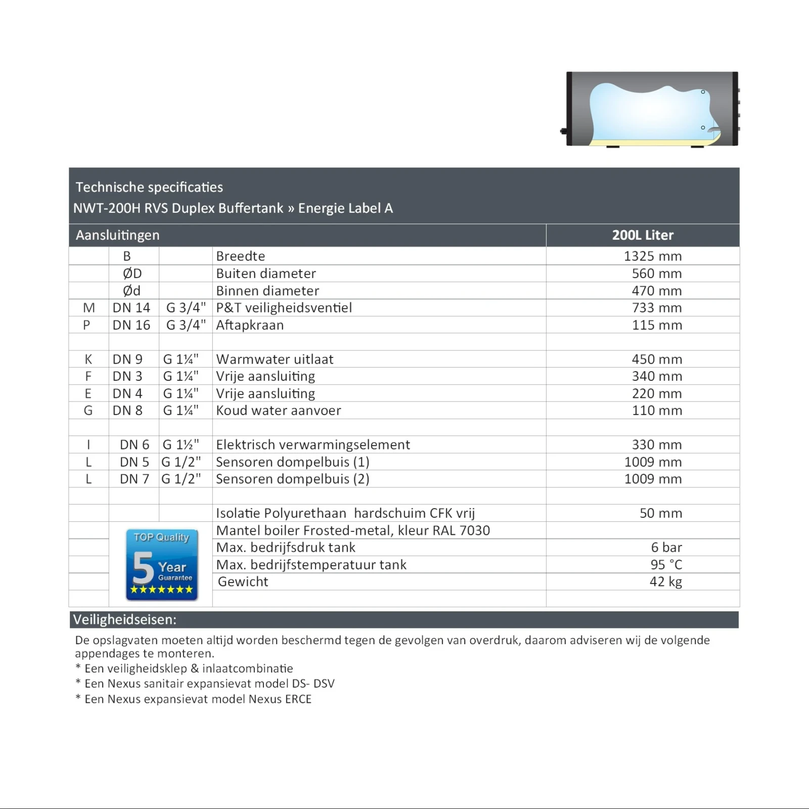 Der PWT-200H gehört zur Edelstahl-Puffertankserie NEXUS und entspricht den Produktionsstandards der europäischen Richtlinie 2014/68/EU (Modul A). Dank fortschrittlicher Schweißtechnik zeichnen sich diese Puffertanks durch international hohe und dauerhafte Qualitätsstandards, ein elegantes Design und hervorragende Korrosionsbeständigkeit aus. Durch seine horizontale Bauweise eignet er sich besonders für Technikräume mit geringer Deckenhöhe, ohne Kompromisse bei Leistung oder Kapazität einzugehen.