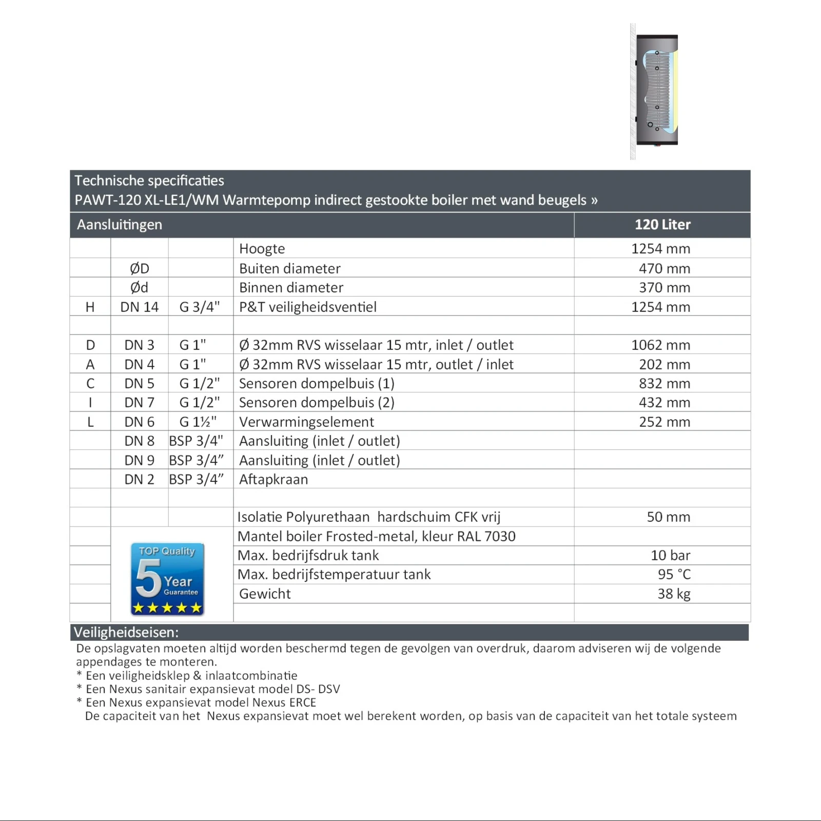 Der PAWT-120 XL-LE1 gehört zur NEXUS RVS-Serie und erfüllt die Produktionsstandards der europäischen Richtlinie 2014/68/EU (Modul A). Dank fortschrittlicher Schweißtechnik zeichnen sich diese Heizkessel durch international hohe und dauerhafte Qualitätsstandards, ein elegantes Design und hervorragende Korrosionsbeständigkeit aus. Die kompakte, vertikale Wandmontage mit Bodenanschluss macht diesen Heizkessel besonders geeignet für Hauswirtschaftsräume mit begrenzter Stellfläche, ohne Kompromisse bei Effizienz oder Leistung einzugehen.